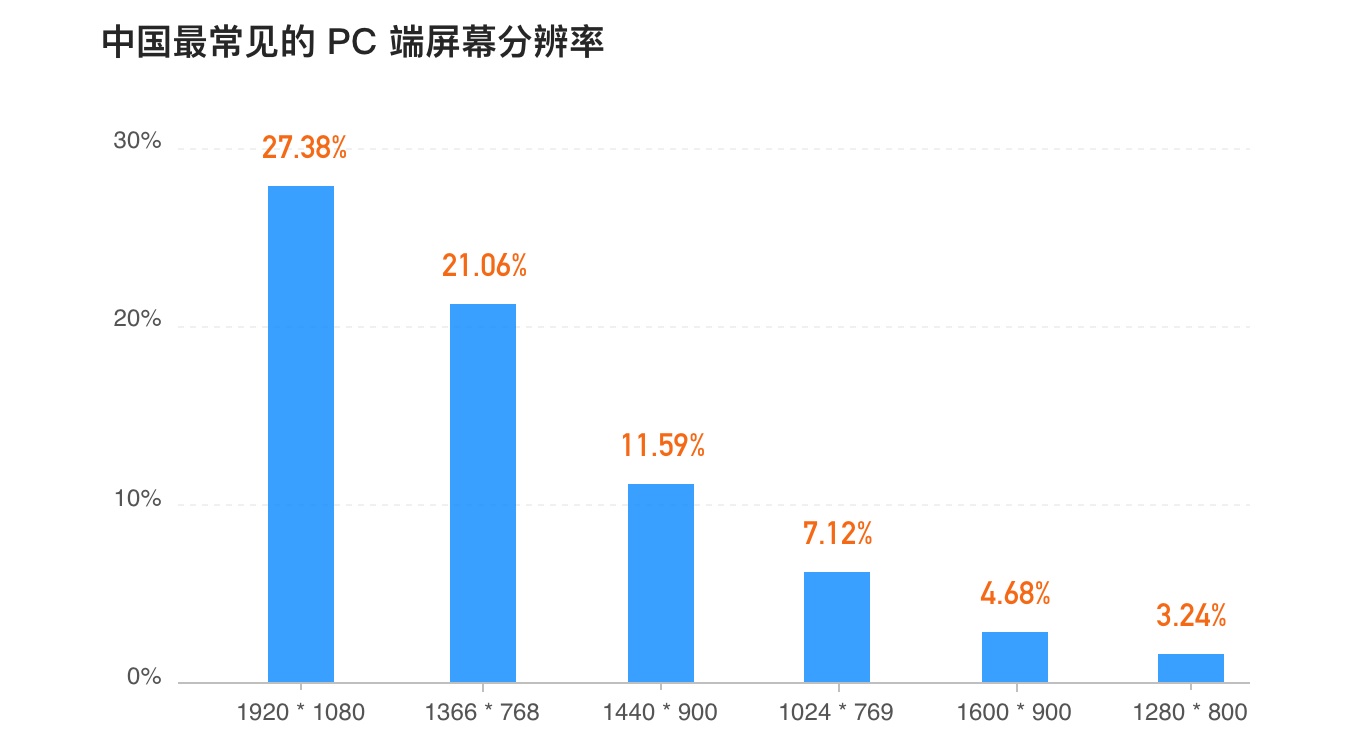 所以基于這個前提,很多人會去查找關于屏幕使用分辨率的統(tǒng)計表格,比如下圖這種,然后得出最常用的分辨率是 1080P。有了數(shù)據(jù)支撐,我們不就可以開始動手設計了?