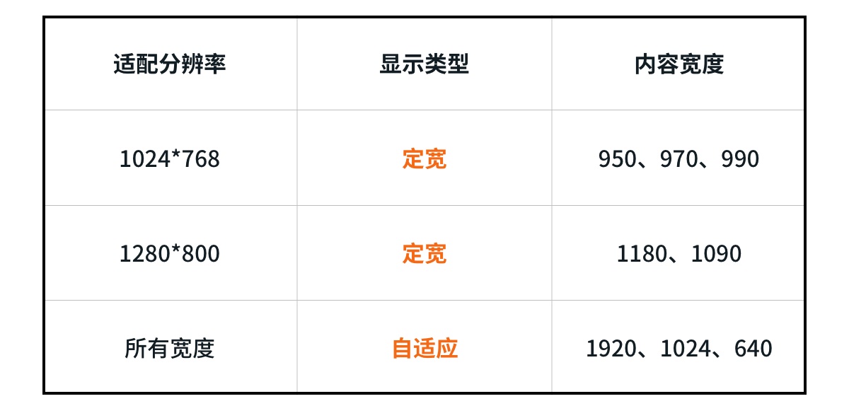 如果你現(xiàn)在還需要通過這篇內(nèi)容學習網(wǎng)頁寬度制定的情況下,我是不建議在真實項目中使用這種展示類型的。因為它們都需要對前端架構有一定的熟悉,以及對 CSS 的屬性特性有基本認識,否則就無法在設計過程中直接考慮到其它分辨率下顯示的效果,以及制定不同元素的自適應方式。