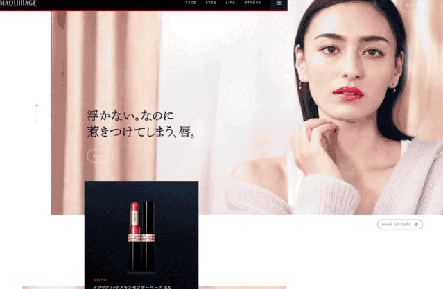 圖片和圖框的疊加,本質(zhì)上是比正方形或長(zhǎng)方形的圖片,更加具有不規(guī)則的美感?;瘖y品類(lèi)的網(wǎng)站,使用這種不規(guī)則的形式,傳遞出了高級(jí)和精致的美感。