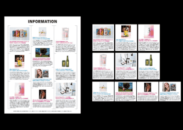 就是我們前面畫(huà)冊(cè)的類(lèi)型,圖片與圖案的相互疊加。其實(shí)本質(zhì)上就是為了突破網(wǎng)格型的種種限制,讓版面變的更加地活潑有趣。