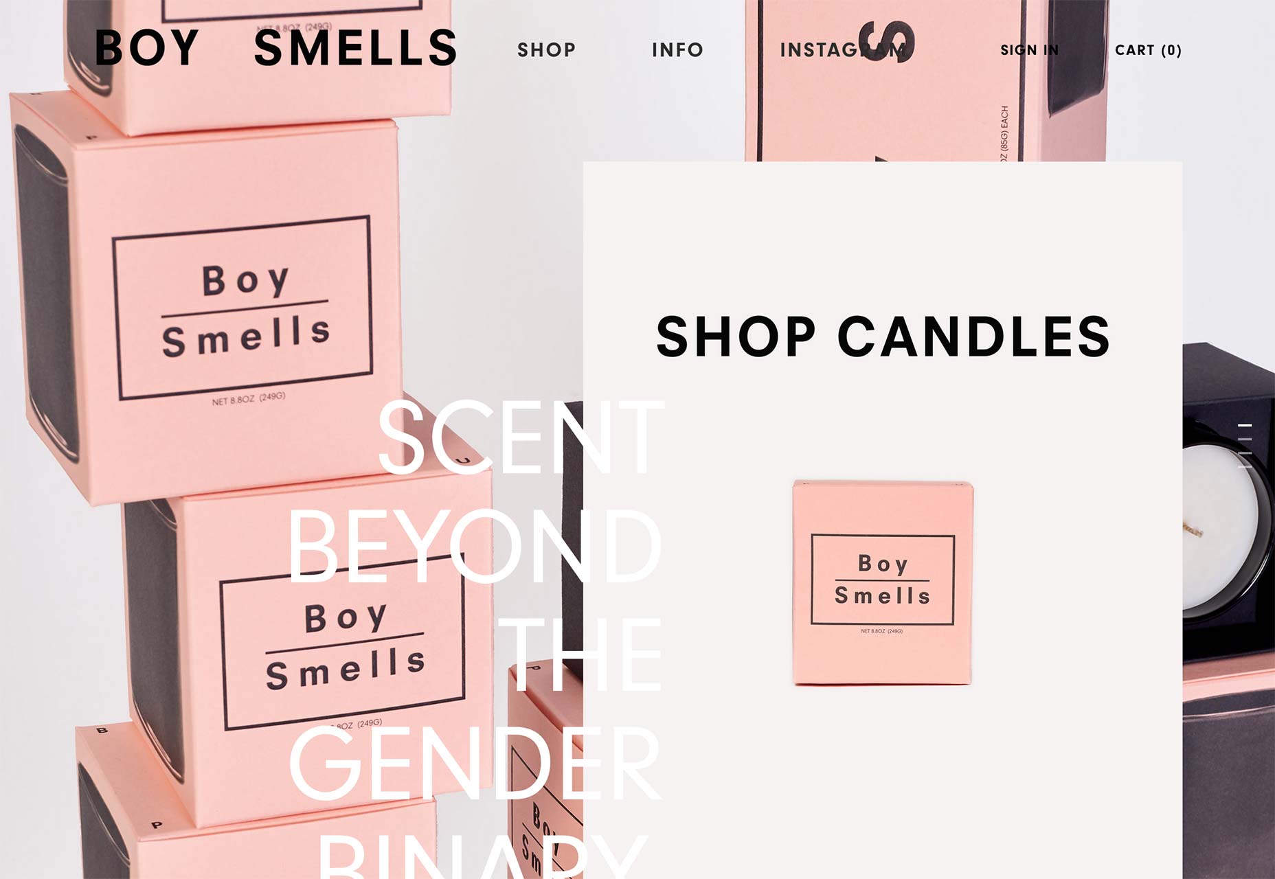 Boy Smells 是一個著名的香薰蠟燭供應商,他們的產(chǎn)品覆蓋了男性和女性用戶,在設計上也采用了大膽的字體和非常貼合品牌氛圍的粉色。整個網(wǎng)站設計非常的現(xiàn)代,也非常有情調(diào)。