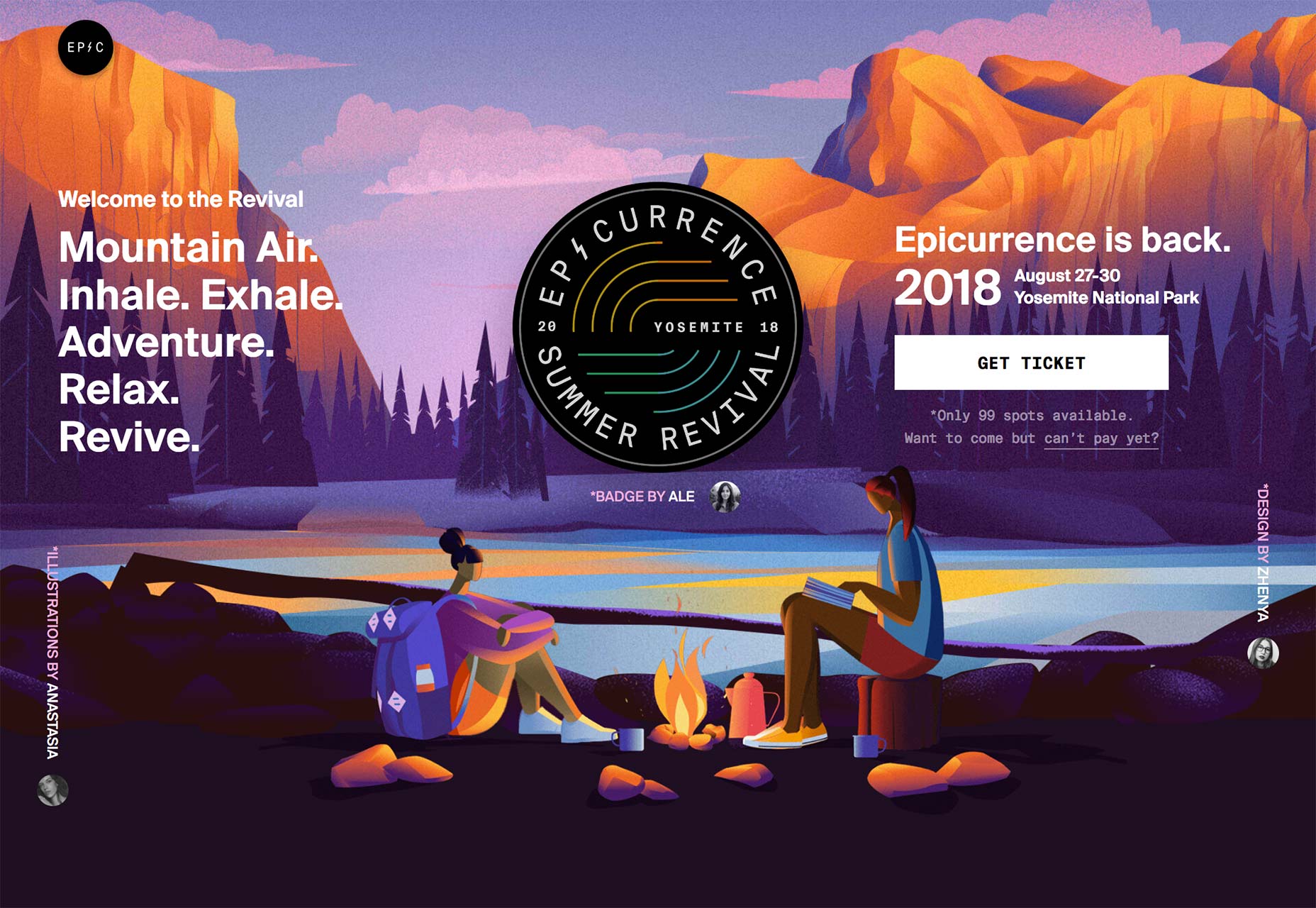 這個網(wǎng)站是一個為創(chuàng)意工作者所舉辦的 Epicurrence 2018 峰會,會議地點在著名的 Yosemite。整個網(wǎng)站在設計的時候,都采用了令人驚嘆的插畫和微妙的視差,讓人會忍不住與之互動。