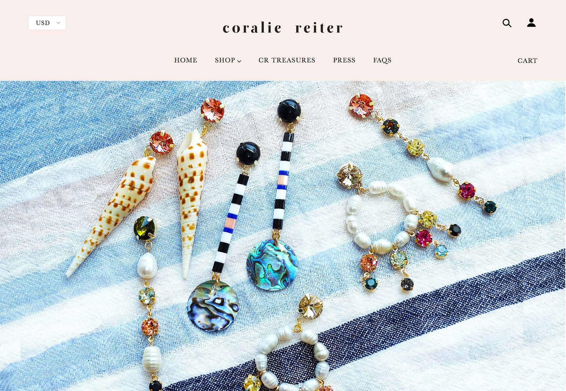 Coralie Reiter 使用天然的貝殼等材料來制造精美的首飾,網(wǎng)站的設計也采用了細致到位的細節(jié)展示,呈現(xiàn)整個系列產(chǎn)品的生命力和活力。