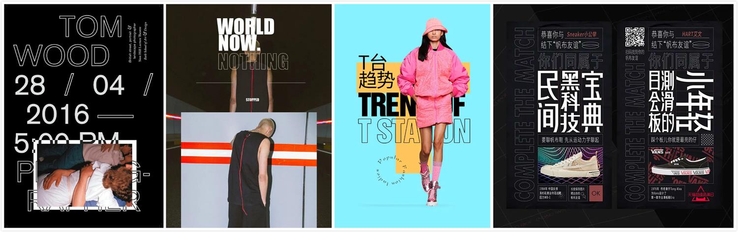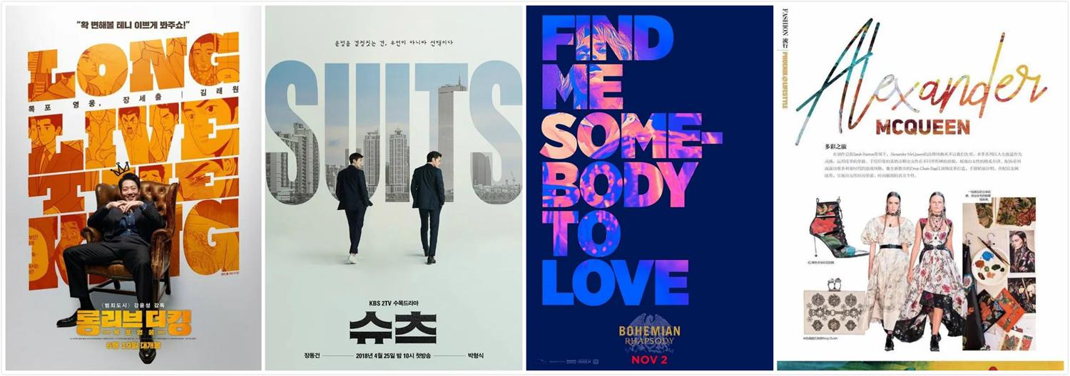 比如給英文或者中文標(biāo)題選擇一個(gè)筆畫很粗的無襯線字體,然后在它上面加一個(gè)或幾個(gè)比較潦草、筆畫較細(xì)的手寫英文單詞,就能得到一個(gè)很不錯(cuò)的效果。