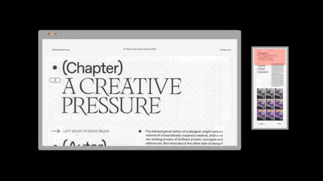 看看其他類型的畫冊,也可以借鑒做成單專欄型版式的網(wǎng)頁。將它們還原成圖片的形態(tài),將它們的模塊重新架構(gòu)起來。