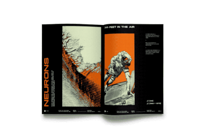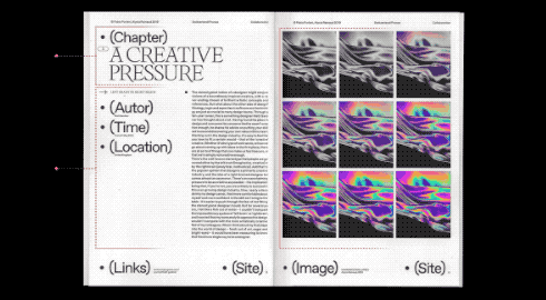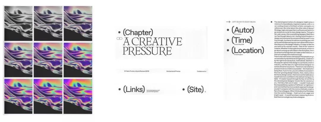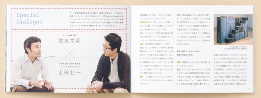 在我們觀看畫冊的時(shí)候,其實(shí)中間的裝訂線,分割了這本畫冊。讓他們兩面都展示著不同類型的信息。
